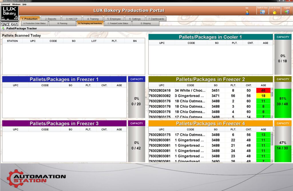A large bakery needed to record every box and pallet that gets stored and shipped to customers as well as track order status.
